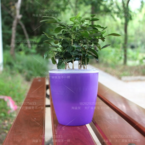Colorful Self Watering Round Planter Flower Pot Home Garden Decor Professional Green Plant Vase Translucent Purple Medium M5 Walmart Com